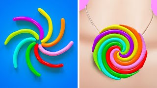 We prepared one more collection of crafting ideas from polymer clay. For example, you can make cute keychains that will be cool gifts for family and friends. Crafting clay is a perfect material for crafting as you can create various forms without an effort. Check out an easy tutorial on how to create beautiful shells or lollipops following this tutorial: cut polymer clay in strips and place a comb on polymer clay and push a but. Now you have a striped print and watch the tutorial on how to finish a cute miniature shell.